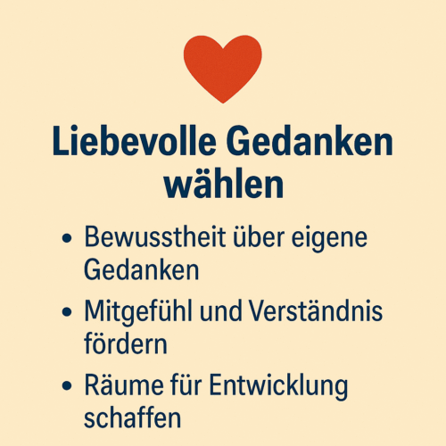 Liebevolle Gedanken sind wie kleine Lichtfunken. Sie springen über – manchmal leise, manchmal überraschend laut. Und sie schaffen Räume, in denen Verständnis wachsen kann. Räume, in denen Fehler nicht bestraft, sondern angenommen werden. Räume, in denen Entwicklung möglich wird – bei dir und bei anderen.