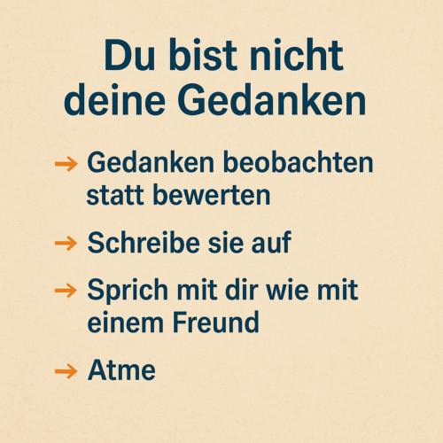 Wenn du begreifst, dass du nicht deine Gedanken bist, passiert etwas Großartiges: Du hörst auf, jedem inneren Monolog blind zu glauben. Du gewinnst Abstand. Und plötzlich kannst du unterscheiden: